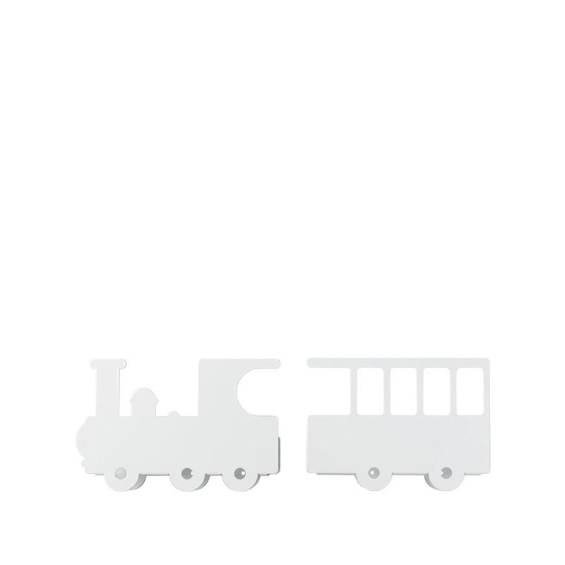 Estantería para habitaciones infantiles en forma de tren. Hecho de metal reciclado y lacado.